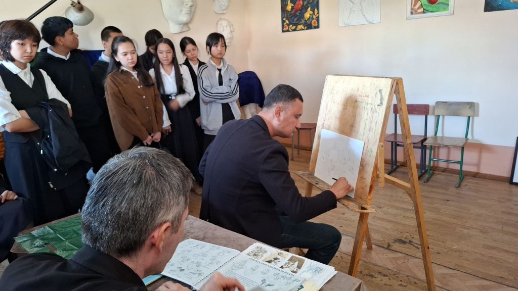 Бугин 25.10.2025 куни Нокис канигелестирилген маденият мектебинин Сууретлеу онери канигелигинде окып атырган окыушыларга Есжан баксы атындагы балалар музыка коркем онер мектебинин окытыушысы Ибраймов Рафатдин аниматцион жанрында шеберлик сабагын отти. Окыушылар кызыктырган сорауларына жууаплар алып шеберлик сабагы жуда кызыклы отти.